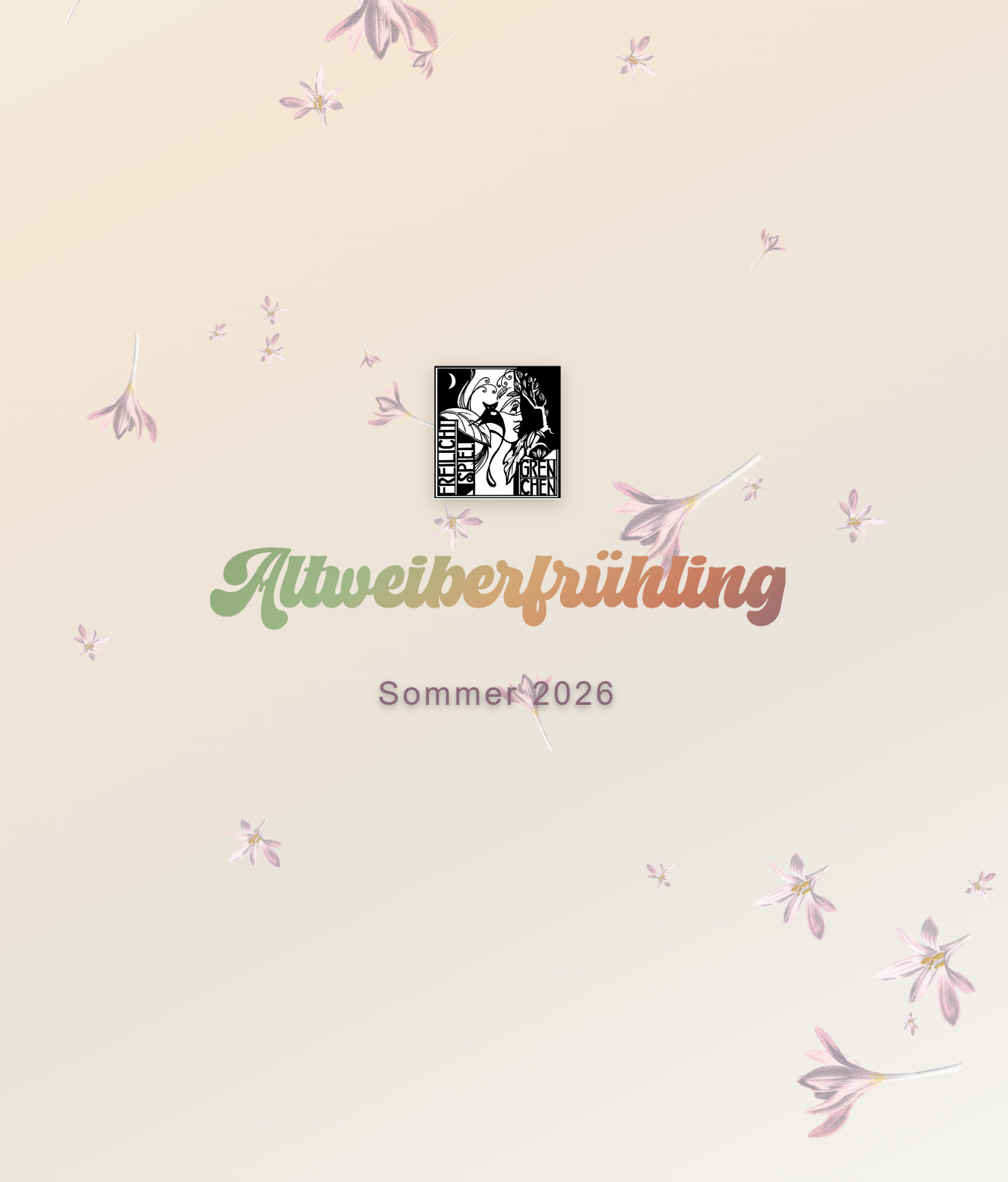 Das vorgesehene Freilichtspiel im Frühsommer 2026 bezieht sich auf das Stück «Altweiberfrühling» von Stefan Vögel nach «Die Herbstzeitlosen» von Sabine Pochhammer und Bettina Oberli. Gespielt wird die Grenchner Fassung, erarbeitet durch Hansjörg Betschart. Auf berührende Weise wird von der zweiten Chance im Leben erzählt und dem nötigen Mut, diese auch zu nutzen. Das Publikum kann sich auf ein tolles Theaterereignis voller Witz, Lebenslust und inspirierender Momente freuen. Getreu unserem Ziel, mit gehaltvoller Unterhaltung zu begeistern, bieten wir die Möglichkeit, im idyllischen Stadtpark Grenchen in eine besondere Erlebniswelt einzutauchen. Nach dem schönen Erfolg des Mani-Matter-Projekts 2024 kehrt im Frühsommer 2026 wieder Theaterzauber in den Stadtpark Grenchen zurück. Der renommierte Autor Hansjörg Betschart schafft eigens für Grenchen eine neue Bühnenfassung des Stücks «Altweiberfrühling». Er überträgt die Geschichte mit Herz, Witz wie auch Tiefgang in die Gegenwart und in unsere Umgebung. Im Zentrum stehen mutige Figuren, die ihre Träume gegen alle Widerstände verwirklichen. Sie zeigen dabei, dass es nie zu spät ist, Neues zu wagen. Das Stück verbindet volkstümlichen Charme mit modernen Themen. Zudem wird das Ganze von live gespielter Musik begleitet. Auf der Bühne stehen unter der Leitung von Regisseur Jens Wachholz ausgewiesene Darstellerinnen und Darsteller aus der Region. Alle werden mit Leidenschaft und Feingefühl ein unvergessliches Freilicht-Erlebnis kreieren. Die Aufführungen versprechen Genuss, Humor wie auch berührende Momente. Dies entspricht einer positiven Bereicherung in schwierigen Zeiten, wie wir sie momentan erleben. Alles wird unter freiem Himmel in einmaliger, naturnaher Atmosphäre geboten. Zusammenfassend ein Theaterereignis mit Labung für Kopf und Seele!